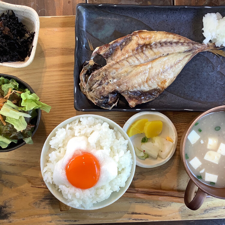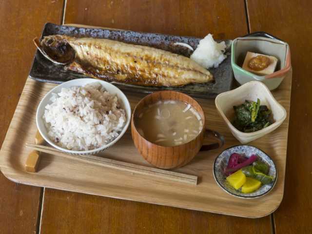 江ノ電稲村ヶ崎駅近くの踏切脇に建つ、大正後期の古民家を改装した食堂&カフェ。店主の実家である干物専門店の上質な干物を使った定食が好評。