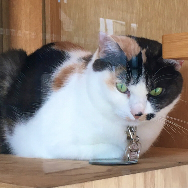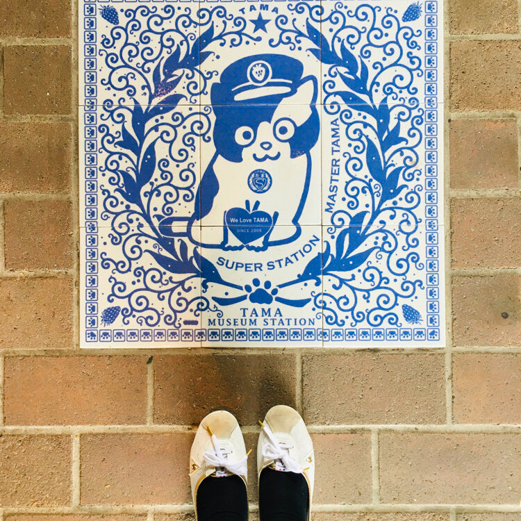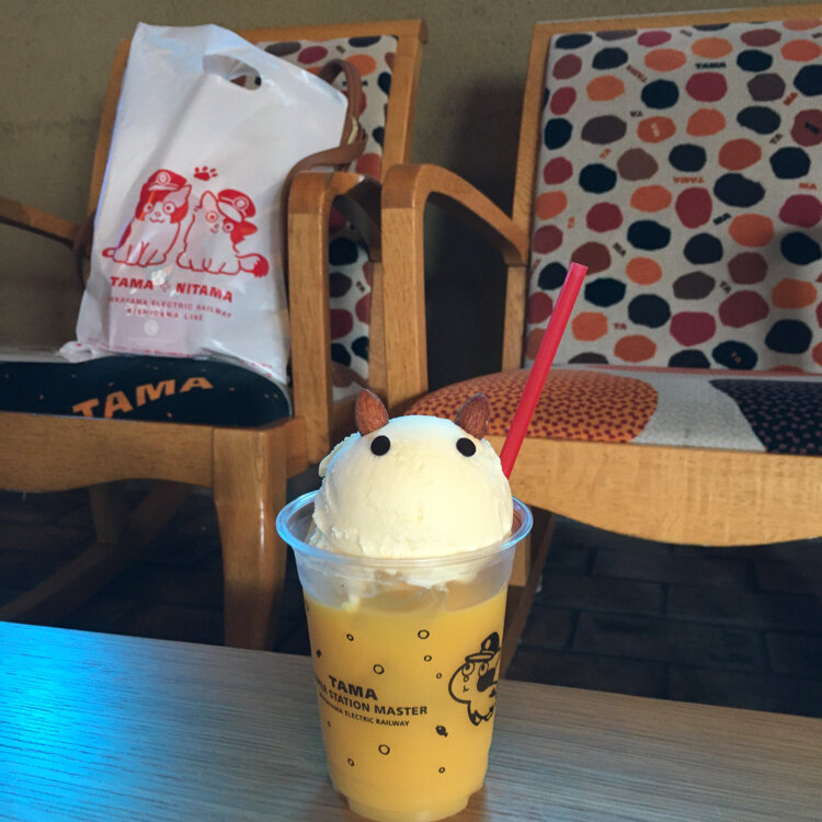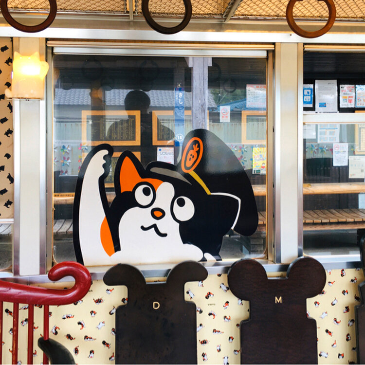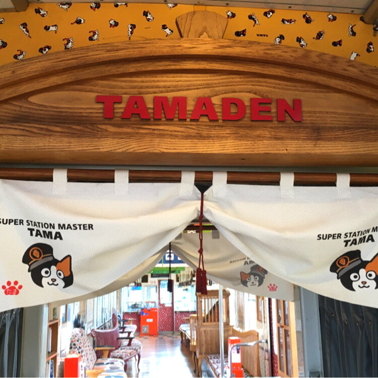 たまII世駅長と、名誉永久駅長のたまが出迎えてくれる