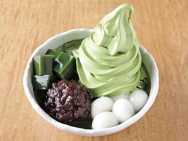 明治44(1911)年創業の御茶屋に併設されているカフェ。上質の抹茶をパフェやソフトクリームにも使用している。一番人気は特選あんみつ。女性客が9割を占める。