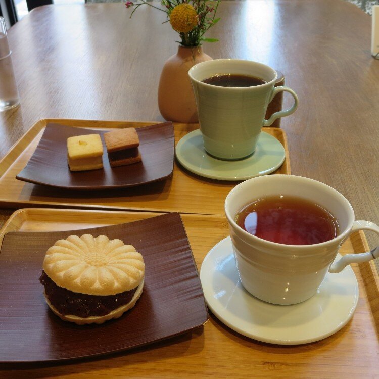 〈また旅はつづく 京都その8*開化堂カフェ〉 最終日の16日は、大好きなことりっぷユーザーさんと、約1年半ぶりのウキウキ再会♪ 前日は張り切って鞍馬&貴船のアップダウンの道を歩いて、膝に痛みを感じてしまった事情もあり、無理ない京都駅に近い散歩プランに変更。 「私はお会いして、話が出来たら嬉しいので」との泣けちゃう感激メッセージを貰い、体ケアを丁寧にして休んだお陰でしょうか。朝からもう、ミラクルに復活!よかった~(^_^) 五条駅から、地元に愛されてる2つのお寺と神社をめぐって、こちらに小休止しました。 明治8年創業、日本で一番古い歴史をもつ手作り茶筒の老舗〈京都開化堂〉さんのカフェです。 トップ写真は、それぞれ2人が選んだお茶セットが楽しく並んでます。 手前は私が選んだセット。 甘え控えめな美味しいあんこがたっぷりの最中(中村製餡所)に紅茶(差し湯のお代わりあり)です。 最中がまるで、お喋りなお口みたいでしょ?(笑) 珈琲や紅茶の素敵なカップにも、こだわりがあります。 朝日焼と開化堂さんとのコラボのオリジナル商品だそうで、白磁も青磁もすっきりとモダンで、手にしっくりと和みます。 いつまでもいたかったけれど、まだほんの序の口。 喉をうるおし小腹を満たしたら、お次は渉成園ねと移動しました。 #小さな秋 #アートと建築 #開化堂 #京都