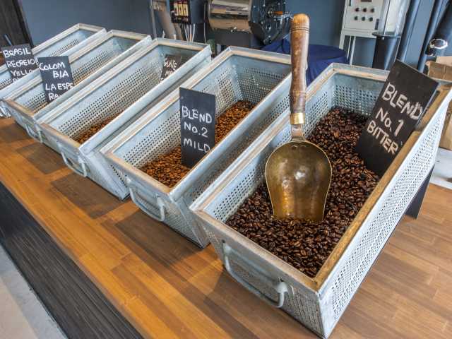 選りすぐりの豆を店内の焙煎機で自家焙煎している。コーヒーとともに味わえる軽食メニューをそろえるほか、ドリンクのみテイクアウトもOK。