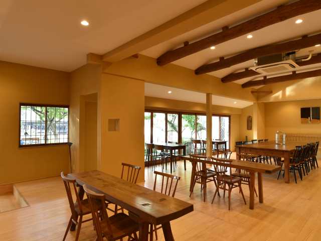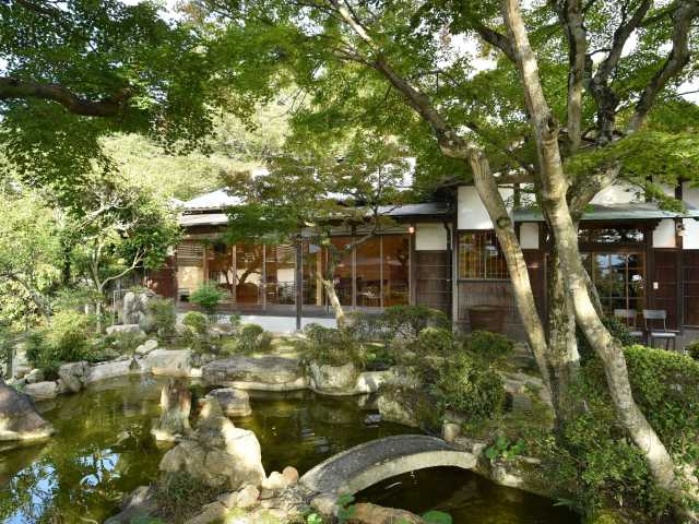 日本庭園ごしに五重塔を望む高台の邸宅カフェ
