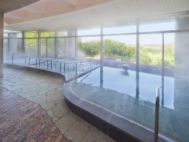 英虞湾を一望する大浴場が評判で、とくに夕暮れ時の眺めは抜群だ。アクティブな温浴が楽しめる「アクアパレス」や本格的なエステサロンもあり、豊かな自然と癒しのひとときを満喫できる。