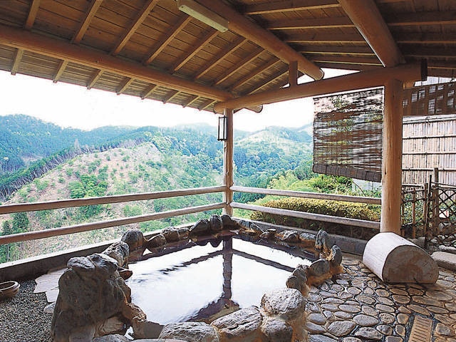 吉野山中千本公園に建ち、吉野の春を彩る壮麗な「一目千本」を湯船から堪能するぜいたくな趣向。花見のころはもとより、季節ごとに美しい吉野山の詩情を豊かに愛でられる。吉野葛をはじめ、鹿や鮎など地元産物を巧みに盛り込んだ料理もおいしい。