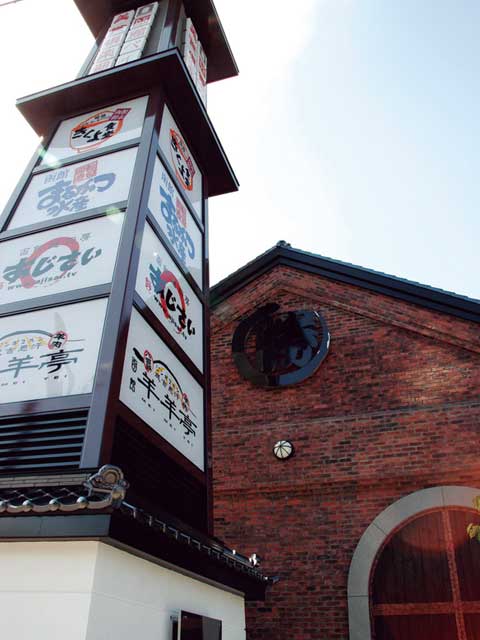 天然温泉の足湯がある広場を中心に、赤レンガを配した和風建築・蔵・洋館など、計4棟の建物で構成される集合飲食施設。北海道グルメが味わえる全5店舗が集まる。