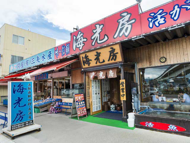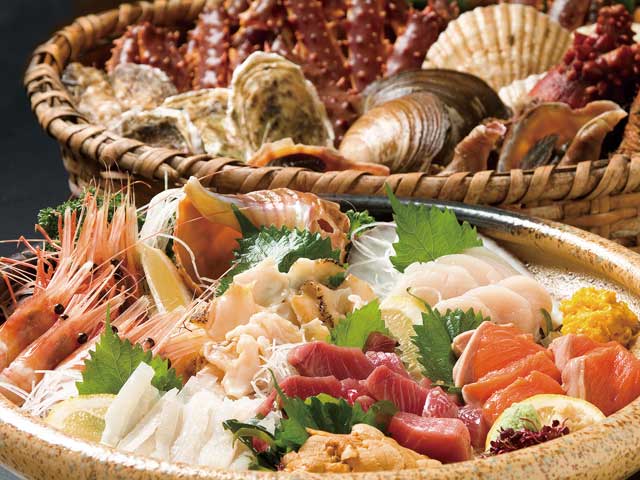 店内には9トンの特大水槽があり、お気に入りの海産物を選んでその場で調理してもらうこともできる。