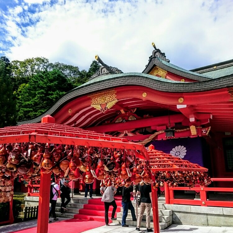 仙台2日目😊 仙台城跡の敷地内には宮城縣護國神社があります😊 手を清めて、本殿でお参りをします🙏 参道の横にはひょうたんがひょうたんが❣❣ 雨に濡れてて、キラキラ水滴が美しい✨ お次はお隣の別宮、浦安宮へ😌 こちらでもお参りをして、御朱印をいただきました😆 帰りには家族にお守りを買って、隣にあるお土産屋さんを見て歩きました😊 そして、青葉城資料展示館にも寄り道😊 そんなに広くないけど、展示品をゆっくり見たり、CGシアターを見ました😊 仙台城の歴史や広間などのCG再現をみると、ここに本当にお城があったんだなぁと感慨深くなりました😌 大満足の仙台城跡でした😉 帰りもるーぷる仙台に乗ろうと思ったら、階段を降りようとしたところで発車しちゃった・・・(;_;) 次のバスは20分後なので、どうしようかと携帯で調べたら地下鉄で帰る選択肢も出てきて、黙って待つくらいなら散歩がてら行ってみよう〜❢ と思ったのが間違いでした・・・(´・ω・`) グーグルマップ見ながら順調に坂道を下っていったら、途中で、通行止め(;´∀`) 落石があるかもしれないから、迂回しろとの事😰 それがめちゃくちゃ迂回する事に・・・💦 携帯の予定到着時間よりも、大分遅くなって、地下鉄の駅に到着😅 疲れ果てながらも仙台駅に着きました😅 #私のことりっぷ#仙台城跡#宮城縣護國神社