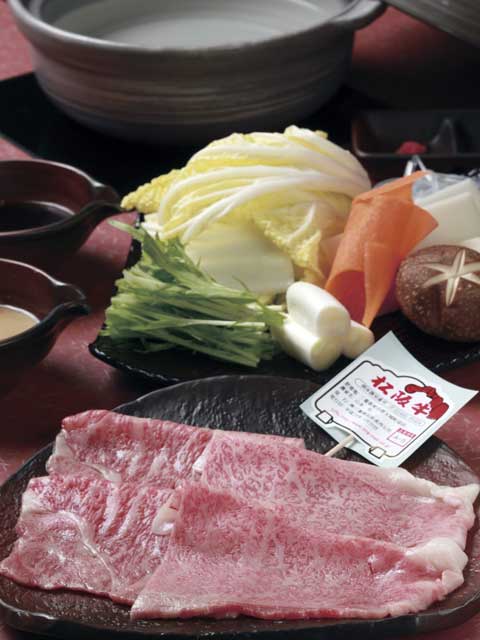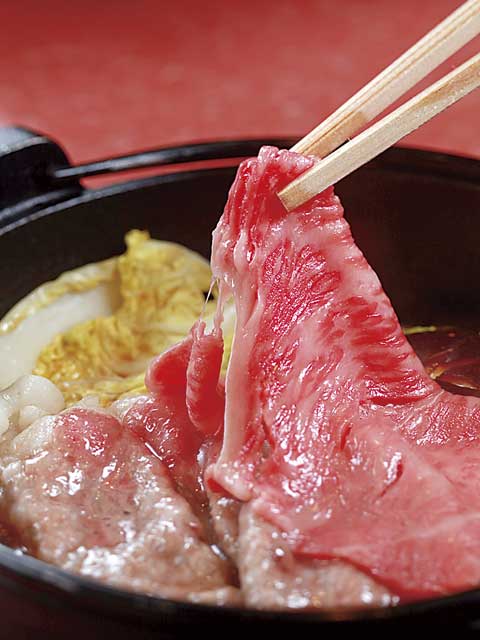 一人からでもすき焼きが楽しめる「ひとり鍋」の専門店。最高級A5ランクの松阪牛120gを、一人前の鍋で味わえる。色鮮やかな厳選牛肉は、口に入れた瞬間にふわっととろけるやわらかさ。