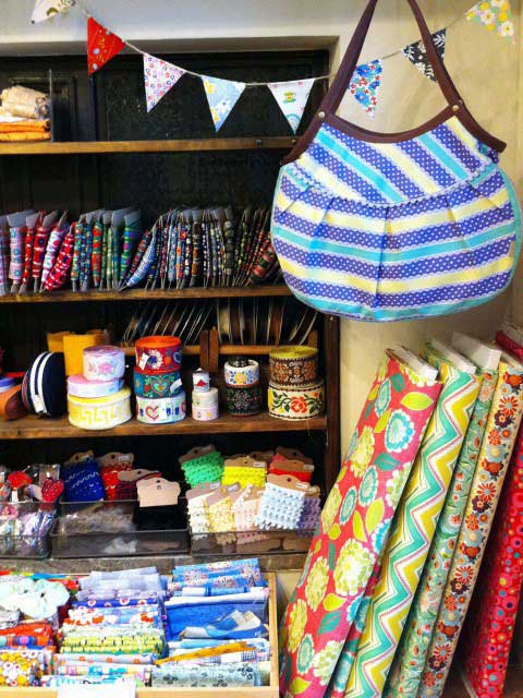 ヴィンテージファブリックやボタンなど、国内外でセレクトした手芸用品が並ぶショップ。店内にあるデッドストックの布を自由に選んで作ってもらえるセミオーダーのバッグが人気。