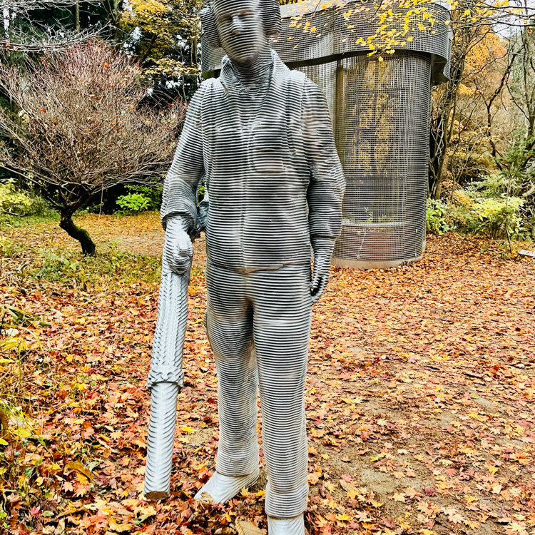 中庭にはかがり火の演出、廊下は畳敷き、ロビーで無料のコーヒー、サウナと水風呂あり。