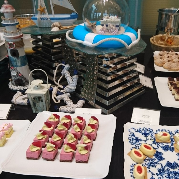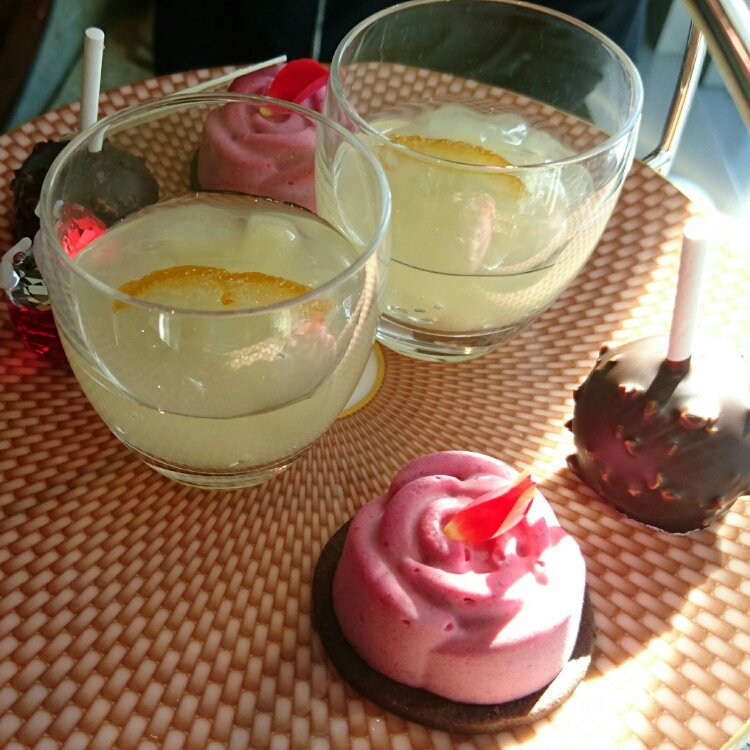 マンダリンオリエンタルホテル  カフェ🏝🥭💛☕  素敵ユーザーさんが風流に、福徳神社の風鈴の音に癒やされてみえた日本橋🎐〜♬  私も日本橋夏イベントのスイーツを楽しもうと地下通路をウロウロ♪ 今日のミッションは屋外に出ないで行動せよ!でした。  マンダリンオリエンタルホテルのカフェを覗くと☁スイーツが2つ☁☁  お昼に残っているのは珍しく、早速☁スイーツと、のグラスの中に南の島が広がっているアクアリウムのような可愛いイベント限定のスイーツ、そしてティーソーダをいただくことにしました。🏝🥭💙  グラスの底にはブルーのゼリーが海の様に広がり、砂浜の椰子の木には小さな実が2つ実っていました。  爽やかなゼリーの上の層はムース、そして砂浜には甘い甘いマンゴーが一面に。  貝殻やヒトデまでチョコレートで作られて、一口食べたらもうビーチ気分を満喫出来ました。🏖🎵  ☁スイーツの中は桃の実がコロコロ、定番スイーツですが季節に寄って中が異なるのも楽しみです。  ティーソーダも夏にはピッタリの爽やかなテイストでお勧めです。 #私のことりっぷ旅#日本橋の夏#イベントスイーツ#夏のビーチスイーツ#細やかな細工が可愛い#マンゴー#ソーダゼリー#おやつの時間#爽やかティーソーダ#人気☁スイーツ#mg