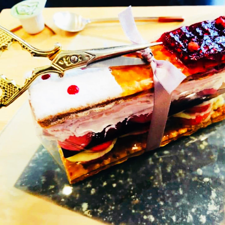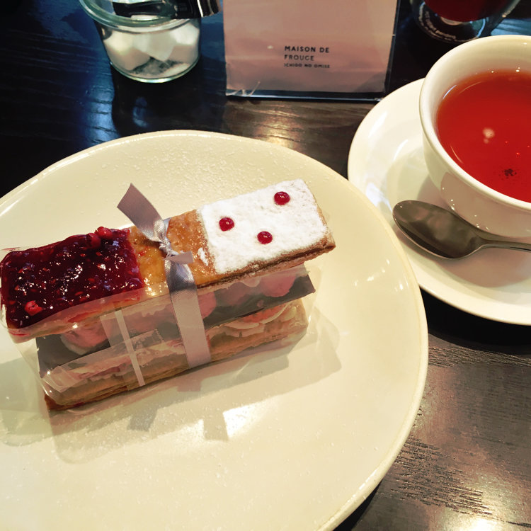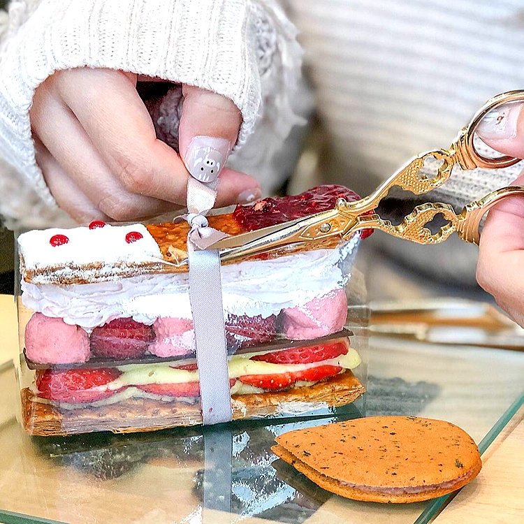苺のお店🍓メゾン・ド・フルージュ 念願のリボンカットできました🎀 * 皆さまご存知🍓いちごのお菓子専門店のメゾンドフルージュさん🍓いつも苺好きな人で賑わっているお店です😊 開店時間頃に伺ってみたら、先客まだ2人で席が空いてました😊 先に注文会計を済ませるスタイルで、ケースの中のケーキを選びます🍓大晦日の『ざわつく金曜日』で紹介されたと言うプレミアムいちごショートケーキ、いちごタルトとさんざん悩みながら、開店直後すぐに売り切れると言う ミルフィーユに😊🍓 * お洒落な鋏でリボンテープをカットするひと手間が 人気の秘密のようです💗 周りのフィルムを剥がすと、直ぐに崩れてしまいそうで パクつきました😊 さくさくパイ生地にカスタードやいちごクリーム、木苺クリームやビターチョコが挟まれて、とっても美味しいミルフィーユでした😊🍓✨ * 先客さんの1人が、ミルフィーユとプレミアムショートケーキの両方とも注文されていて✨最初は2個も食べられるの?と思ってましたが🤔 ミルフィーユ食べ終わった頃には、これならどっちも食べられそうだなぁと思いました🍓😊 * いちご愛から生まれたお店メゾンドフルージュさん🍓 後から後から買いに来られる人でいっぱいになりました😊 いちごプレミアムショートケーキは、次々と焼き上がってケースに追加されてました😊私も次回は・.。*・.。*(∩˘ω˘∩ )♡ #京都カフェ #いちごの日 #京都スイーツ #いちごスイーツ #ファンタジーの世界 #Myことりっぷ #毎日がいちごフェア #メゾンドフルージュ