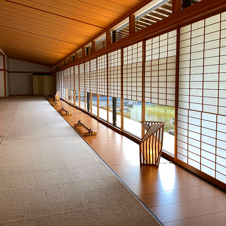 自然と歴史を伝える緑豊かな東山に位置。コンテンポラリージャパニーズをコンセプトにデザインの館内