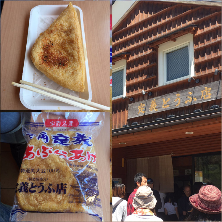仙台 定義とうふ店さん 油揚げです☺️仙台に行くと必ずお土産で買って帰る三角定義あぶら揚げ🟨✨ #あきらの東北 、 2年ぐらい前かな ある日の仙台旅で食べた居酒屋さんで教えてもらったのです🙂 、 定義山にあるとうふ屋さんの油揚げがたまらなくおいしいと🫨 、 しかし車がないと行けない🤔 、 🙂💡天保そば食べに行くときに定義山に行こう 、 そしてついにこの日がやって来ました😊 、 仙台空港から山形市でお蕎麦をいただき定義山へ向かいます⛰️🚗 🍜🚗 、 ありました🏠✨ 並んではいませんが席は8割ぐらい埋まってますね🫨 、 明治23年創業 120℃でじっくり揚げてから180℃で揚げると香ばしさとパリパリが生まれるそうです☺️揚げ職人おばちゃんはその日の天気で揚げ時間を変えてるらしい👩‍🍳キョウハコレグライ 、 あげたて150円   豆乳130円 、 お外で食べます☀️ 、 箸でぷすぷす穴を開けて醤油と七味をどばーです☺️ 、 おいし過ぎる😂 、 家で電子レンジでもおいしいけど別物でした🟨✨ 、 にんにく七味がめちゃくちゃおいしい😋 、 やっと来れて大満足でした😊 、 定義如来西方寺さんもちゃんとお参りしました🙏☺️ 玉こんも食べました☺️ 、 #あきらの東北