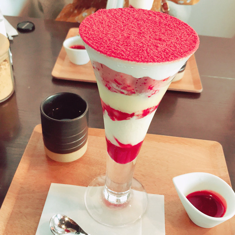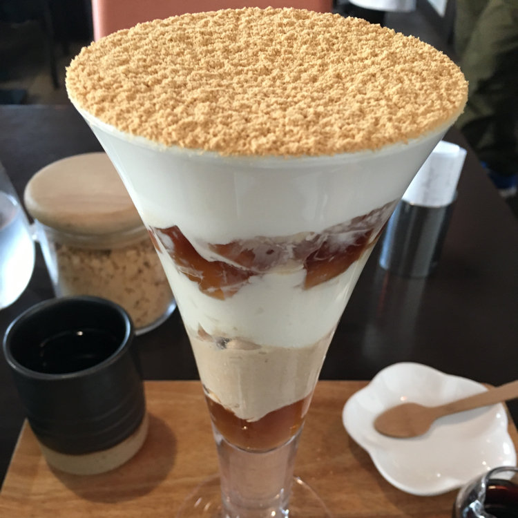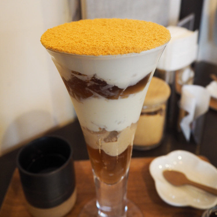 焦がしきな粉パフェ 吉祥菓寮 祇園本店  以前 ことりっぷの記事を見て 今度京都に行ったら絶対行こう❣️と決めていたきな粉スイーツのお店❣️ 夕方 京都駅について真っ先に向かう💨  京都の古民家をリノベーションされた店内は  1階は パティスリーになっていてモダンな感じ 2階は、カフェになっています。   ラストオーダーギリギリセーフ 普段は行列の人気店ですが運良く入店❣️ 念願の焦がしきな粉パフェ❣️ あまりのきな粉の迫力に食べれる❓大丈夫❓ と一瞬ひるむ😅も 表面張力ギリギリに盛られたきな粉は、 全然ひつこくなくて クランチとメレンゲをサクサクと割りながら食べすすむー美味しい💕 ほうじ茶ゼリーもあっさりしていて 甘すぎず ペロリといけてしまう💕 本わらび餅は、なんと追い自家焙煎きな粉付き たっぷり好きなだけかけれるというきな粉好きには夢のような時間💕 あー京都に来て良かった❣️と思える瞬間でした〜❣️ と 沢山1階でお土産を買って手がちぎれるかと思っていた矢先 頂いたリーフレットに 2020年 なんと東京 渋谷宮下パークに 六本木ヒルズと立て続けにオープンしていることを知る😵😵ビックリ⁉️ 東京でも食べれるし、これ買える😂 悲報😭いや朗報だよね〜❗️って思いながら すっかり日も暮れた柳も揺れる祇園の路地を 次の店にトボトボ歩く〜。 昨年の秋に訪れた京都 #京都 #祇園 #吉祥菓寮 #パフェ #焦がしきな粉パフェ #わらび餅 #京都弾丸ツアーはしご旅 #京町屋