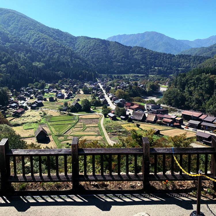 荻町合掌造り集落と、集落を囲む白山連峰が一望できる。季節によって田や山の表情が様変わりし、四季折々の美しさをパノラマで体感できるのが醍醐味。カメラマンも多数訪れる人気の撮影スポットだ。