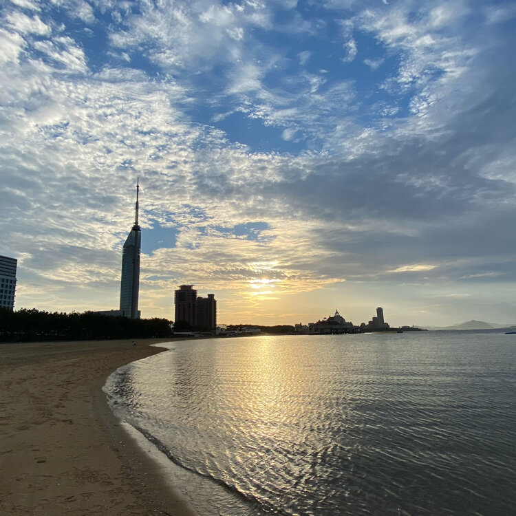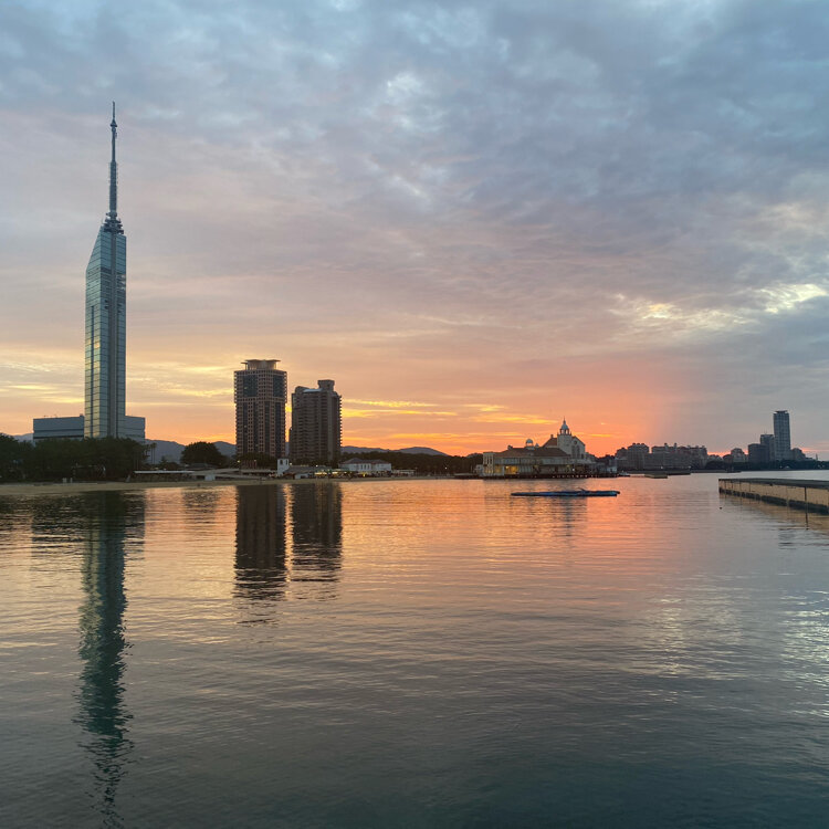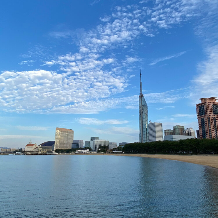 福岡タワーの北側にひろがる白い砂浜とおだやかな博多湾を一望できる人工ビーチ。レストランや結婚式場もある。