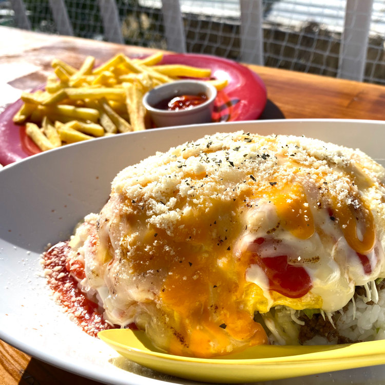【タコライスcafe きじむなぁ 瀬長島ウミカジテラス店】 沖縄旅最後のご飯はタコライス+オムレツのオムタコで。お昼の1番混んでいる時間におじゃましたのでお店の前には行列ができていました。 トッピングとかソースとかたくさん種類があったので、迷っているうちに順番がまわってきました😂 結局ポスターでおっきく推しているスパムトッピング、ミート&ビーンズのソースにしました。でもどの組み合わせも美味しそうだよー💦 店内はいっぱいだったので、テラス席で海と飛び立つ飛行機を見ながらいただきます。 テラス席は外なのでもちろんめっちゃアツイんですが、眺めは最高😀 地域猫ちゃんたちが通りかかったり飛行機と海を眺めたり、映えな写真を撮ったりと忙しい🤣 オムタコはボリューム満点で玉子がふわふわでとってもおいしかったです😋 このあと空港までレンタカーの運転がなかったらビール飲みたいくらいステキなお店でした。 (2023.9.4) ※ このあと飛行機でバビュンとセントレアに戻ってきまして、ちょっと遅めの夏休み沖縄旅は終了です。 長々お付き合いありがとうございました😊 はぁ〜、もう沖縄に行きたくて仕方がないですー✈️ ※ #オムタコ #絶景 #瀬長島 #ことりっぷ沖縄 #カメラ旅 #私のことりっぷ旅