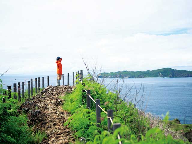 景勝地・小富士の山頂からの絶景は、母島に来たらぜひ見て帰りたい。登山道は平坦で初心者でも安心。