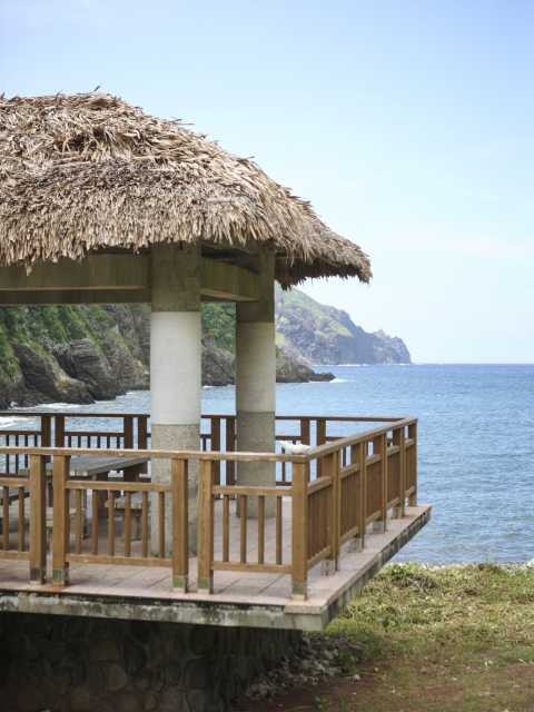 今は使われていない北の玄関口。戦前は600人が暮らす集落があり、東京からの定期船もあった。小さな東屋があるのでのんびり過ごせる。