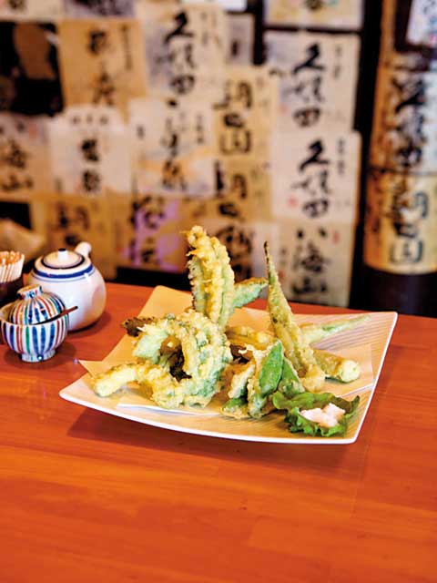 囲炉裏を囲むカウンター、半個室の和室、テーブル席などがある。炉端焼きの鉄板を囲むようにおいてある新鮮な食材から、好みの野菜を焼いてもらうのもいい。