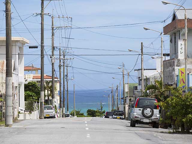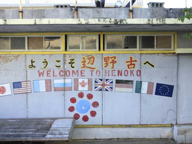 米軍基地キャンプ・シュワブの近くにあり、映画「ホテルハイビスカス」のロケ地になった町。色あせたコンクリート壁の店や英語の看板などが独特の景観を作っている。