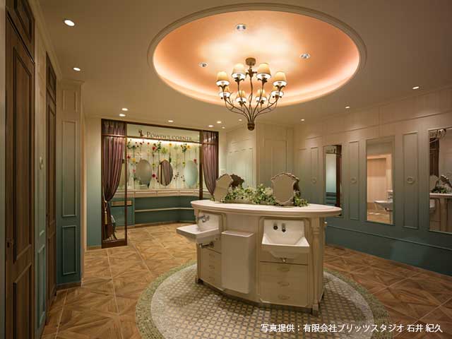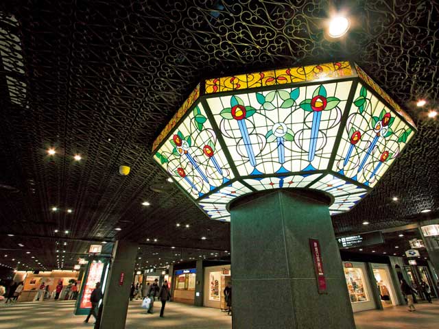 全長590m、南北2つの通りには、レディースファッションを中心に150を超える店舗が並ぶ。地下鉄天神駅や主要ショッピングビルとは通路で直結。全4か所のトイレは、地下街の通路と同じヨーロッパ調のデザインで、アロマの香りが漂う。