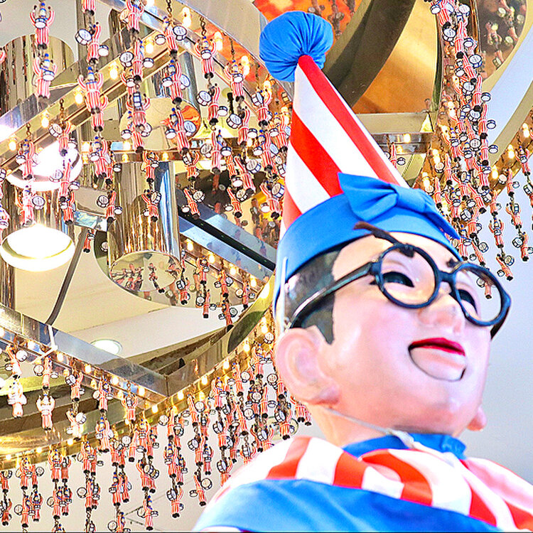 日本で唯一のくいだおれ太郎オフィシャルショップ。太郎の家をコンセプトにした店内には、雑貨や菓子など太郎グッズがいっぱいで目移りしそう。