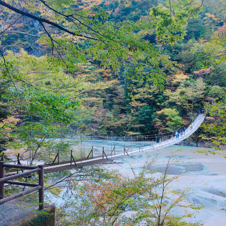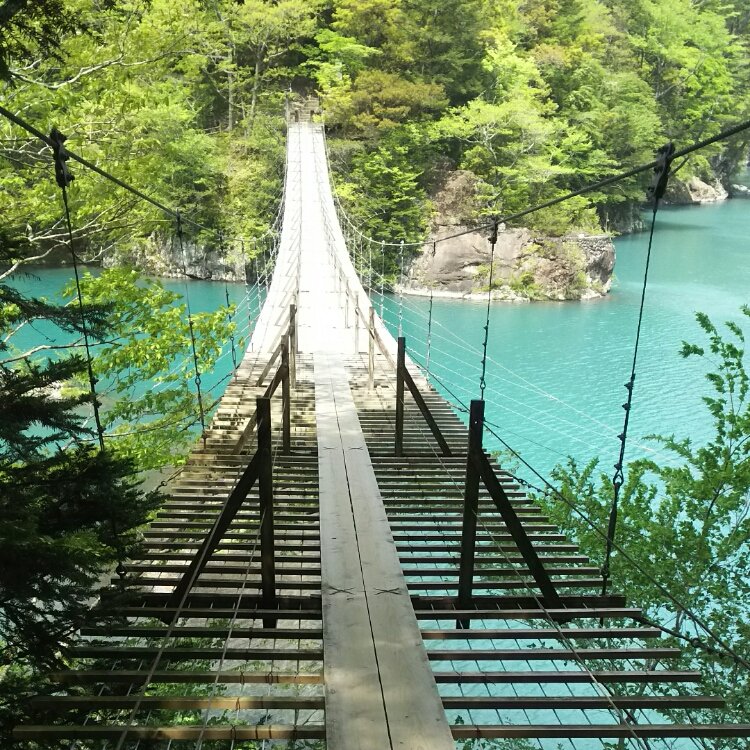 大井川鐵道とその沿線を楽しむ旅⑤ 1日目 夢の吊り橋 アプト式列車で千頭駅に再び戻りました。 ここからは車で寸又峡温泉にある夢の吊り橋へ向かいます。 「寸又峡温泉までは道が狭いから気をつけて」と観光案内所の方に言われたのですが、向かう道は狭いところで1台通過がやっと。 助手席に座っていましたが、足元にあるはずのない架空のブレーキを何度も踏んでいました。 夢の吊り橋に向かう入口は一般車両は入れないので、車を置いて歩いて向かいます。 ここから先の道は、9月半ばに落石事故があり、観光客が取り残されヘリコプターで救助、その後閉鎖されていました。 が、なんと私達が行った日に通行が再開されたのです。 途中、その落石事故の跡があり、係の人が安全を確認しながら誘導してくださいました。 歩みを進めること30分ほど、右下にターコイズブルーのダム湖が見え、いよいよ夢の吊り橋に到着しました。 一度に10人しか渡れない橋ですが、この時は私達2人だけ。 ちょっと怖がりながらも、ゆっくり橋を渡りました。 昔は、この橋の先に湯山という集落があったとのこと。 生活用の橋として欠かせないものだったのですね。 私達も橋を渡り切り、304段の急階段を登り、くるりと周遊して入口へと戻りました。 90分ほどかかりましたが、緑と風を感じながらの散策はとても気持ちよかったです。 紅葉の頃はまた美しいのだろうな。 #大井川鐵道 #電車旅 #静岡県 #寸又峡温泉 #夢の吊り橋も #寸又峡温泉のお湯は #ヌルヌルすべすべ #ベストトリップ2024