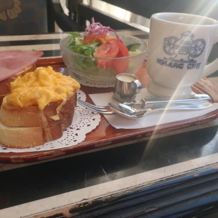 神戸散策🚶 GWにご近所仲良しグループで神戸観光に⚓️ まずは、モーニングを三ノ宮で食べたい❣️と にしむら珈琲を目指します☕️ * つい先日、素敵ユーザーさんの投稿で知った にしむら珈琲店。神戸に何店舗かあると知らず💦 元町店にまず行って、『なんか思っていた雰囲気と 違うなぁ』と再検索🔍 すぐ近くの三宮店に着くと、並んでる人がいましたが すぐに順番回ってきて✨ 11時までのモーニングに滑り込みセーフでした😊 * 2種類あるメニューの私はフルーツ付きを選びました🍓 オープンサンド状になったパンの上には トマト🍅とホワイトアスパラが😃 ホワイトアスパラがなんとなく、港町神戸っぽく感じて✨フルーツポンチみたいなフルーツも懐かしい味わいでした😊 * サラダ付きのパンは玉子とハムのセットで🥚🥖 こちらも美味しそうでした😊🩷 * 入り口に食品サンプルが置いてあるのも 楽しげで懐かしい雰囲気です😊 どっしり座れるソファー席だったので ゆっくりしたい所ですが☺️ 次の目的地ハーバーランドに向かいました🚢 #神戸カフェ #三ノ宮カフェ #モーニング #レトロカフェ #電車旅 #神戸にしむら珈琲 #最後の写真は北野坂店 #ちあきさんありがとうございます