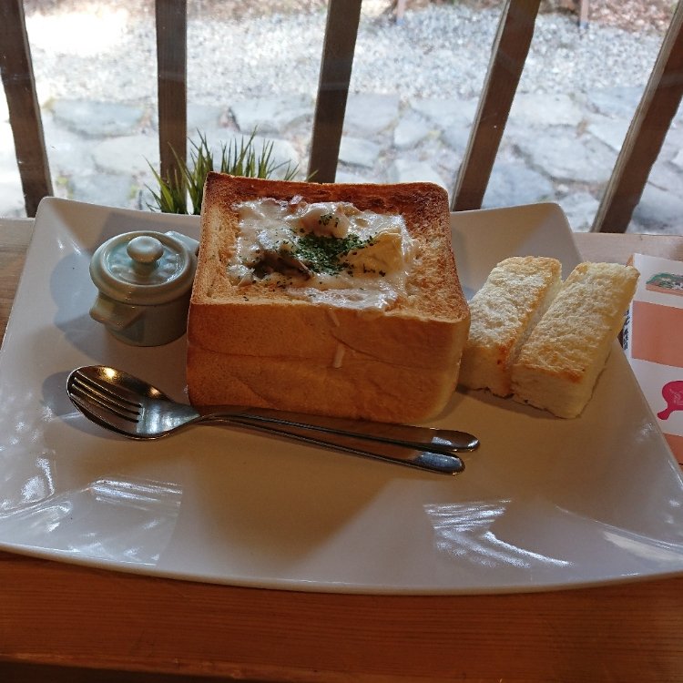 🌞日光はけっこう何だけど……③☔️ 〈大猷院・二荒山神社前〉🚏🚌から乗り 〈神橋〉🚏🚌で降ります。 さあて、ランチ……ランチ😋😋😋😋 アッ⁉️ また階段だわ……歩きにくいタイプ……でも、階段上がってすぐのところに目的地がありました……ホッ(*´-`) 【日光本宮カフェ】 『ふるカフェ系 ハルさんの休日』で放映されたカフェ☕️ 日光に行ったら行きたいな(^-^)/と思っていました。 2016年オープン その前は10年くらい空家で、元々は二荒山神社の神職の人が住んでいたんですって(^○^) この日は7月なのに肌寒い(´・c_・`) おまけに雨☔️でぐしょ濡れじゃ(T_T) 『クラムチャウダー』あるかなァー❓️ 季節限定とメニューに書いてあるけど…… ありました‼️ 金谷ホテル ベーカリーのロイヤルブレッドをくりぬいて器にしてます。 パン🍞をちぎってクラムチャウダーを浸けながら食べます。 パンの下の方にいくと、クラムチャウダーがなくなっちゃった😅 これはバターとかジャムが欲しいな(^○^) コーヒー☕️付きのセットにしたから、パンだけでも美味しく食べられました。 半斤くらい食べたことになる‼️ お腹いっぱい🈵 天然氷のかき氷ののぼりがありました。 もっと暑ければ食べたんだけど…… 日光天然氷を食べるのも楽しみにしていたのね(°▽°) 残念(/。\) また来たいな(^-^)/ #日光 #本宮神社 #本宮カフェ #ふるカフェ系 #ハルさんの休日 #古民家カフェ #クラムチャウダー