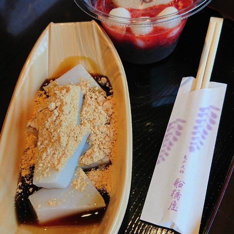 🚌💨 [コアなバスツアー] ⑦🚌💨 こういうバスツアーは年配の参加者が多いから休憩がこまめに入っていて嬉しい🎵 帰路は羽生PAで休憩 小躍りする私(/^^)/ だって『鬼平江戸処』があるんだもん‼️ 車の運転しないから、なかなか行けない場所だった😅 15分.....🚾に行って町並をウロウロキョロキョロ(゜_゜)(。_。) 船橋屋さんに引き付けられる ここのあんみつ食べたことないからお買い上げ❗ 『飲むくず餅 乳酸菌』って何だ⁉️ 1本買ってみよう。 藤のイラストのパッケージ素敵💕 春は亀戸天神に藤を見に行きましょう(^-^)/ あーータイムアウト❎ もっと鬼平の世界を堪能したかった..... あんみつにもくず餅が入っているぞ🎵 くず餅ってどこのお店もそんなに味が違いはない....と思っていたのよ。 うんにゃ違~うヾ(・д・`;) 最近になって味の違いがわかってきた。 これからはアチコチの名物くず餅を食べ比べしたい‼️ 船橋屋さんのくず餅はスッキリおいしい😋 アンコ多めだけど上品な甘さね。 パッケージのなかにリーフレットが入っていた。 「船橋屋のくず餅を食べると何故か調子が良い❗」 というお客様の声から生まれたのが《くず餅乳酸菌》植物性なので乳アレルギーの方も安心してお召し上がりいただけます。 ちょっと酸味を感じるけどスッキリした味わい。毎日、飲むと体にいいんだろうな.... くず餅は江戸の人の整腸薬だったのかもね。 ホッホッホ(*^。^*)  旧石器時代でしょ、弥生時代でしょ、古墳時代でしょ、最後は江戸時代..... タイムスリップしたようで良い旅でした。 #船橋屋 #私のことりっぷ旅 #あんみつ #くず餅 #鬼平江戸処