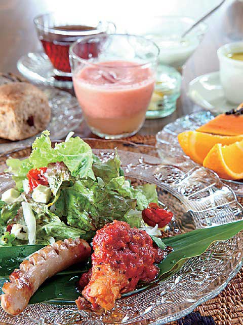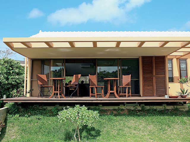 今帰仁村の森に建つ一棟貸切のヴィラ。宿泊は中学生以上の女性1~2名のみという、大人女子旅の宿だ。観光だけでなく、沖縄の自然やフードに親しむ滞在にぴったり。