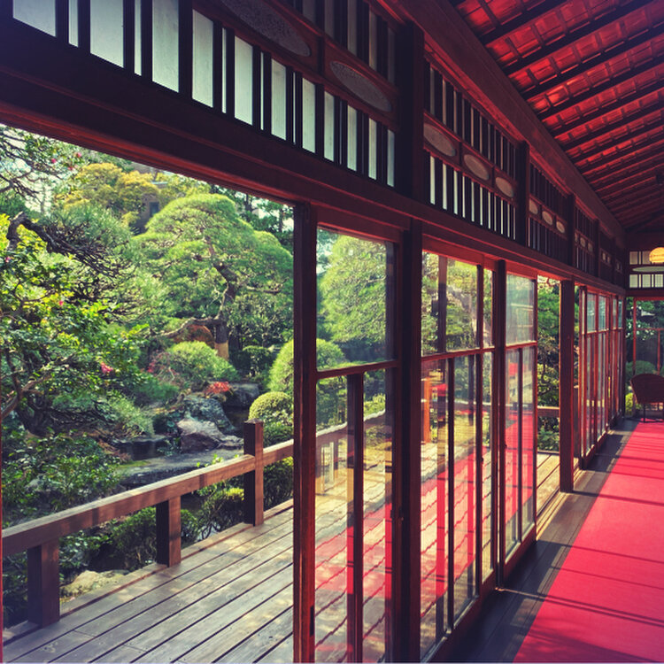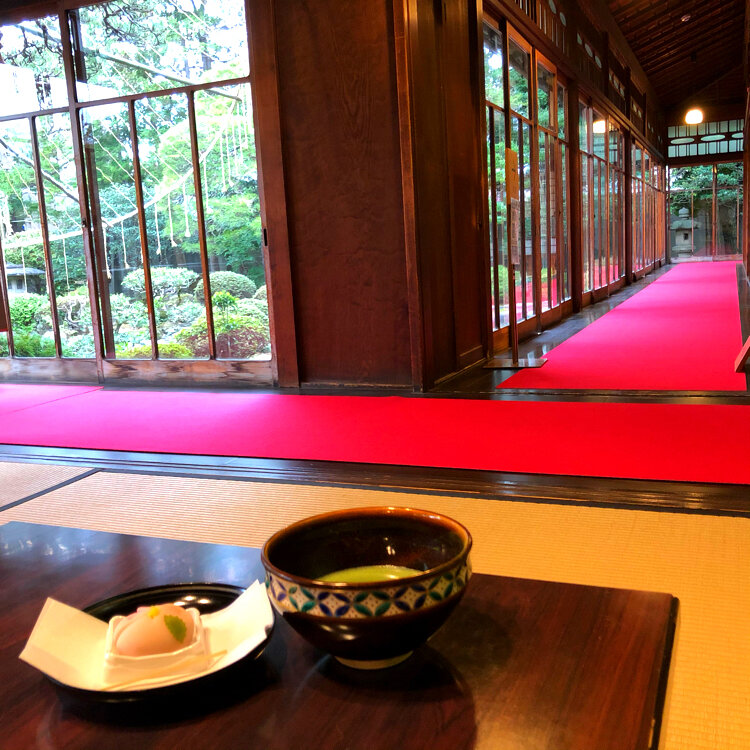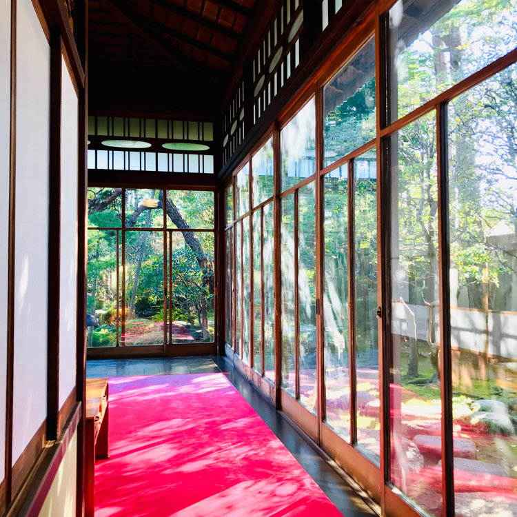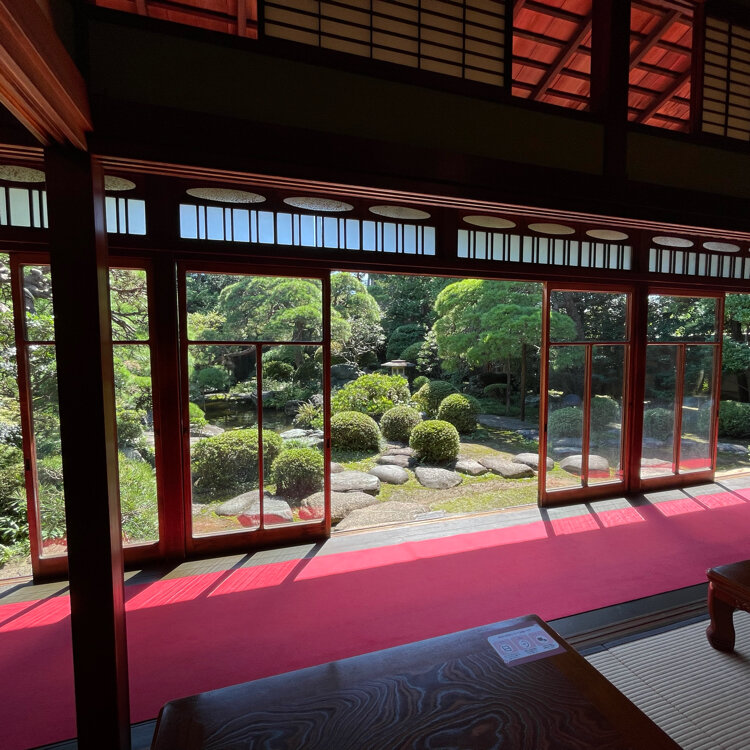 矢切の渡しの近くにある   「山本亭」✨🌿  葛飾区にある歴史ある書院造りの内装と数寄屋風の屋根、漆喰の壁の伝統的な日本建築と、大理石のマントルピース、寄木を用いたモザイク模様の床、ステンドグラスや、ペンダントライト等、洋風建築が複合された魅力的なスポットでした。  お庭も、池泉、滝、築山等もある高い評価を受けています。  一度行ってみたいと思っていたところ、婚礼の前撮りの場所になり、台風明けのまだまだ蒸し暑い日にお邪魔しました。  赤い毛氈に渋いキの建具、レトロな照明が美しい空間が広がっていました💓  お庭の緑が鮮やかで、暗めの和室とのコントラストが綺麗✨  ちゃっかり早目に行って、冷やしぜんざい、菊を模した季節の生菓子、冷たいお抹茶をしっかりいただきました💚  お隣の洋風建築も、内装も外装もお見事〜✨  足元にはタイルが花形になったモザイクアートも綺麗でした。  和も洋もそれぞれの魅力を放ち、甲乙付け難い美しさです。  お茶室を借りての、前撮りの写真も無事終了しましたが、蒸し暑い中着慣れぬ和装の2人は疲れもみせず、流石若い〜😆💓  見守った親達の方がグッタリでした。  撮影スタッフさん、山本亭の方々にも感謝でした🥰 #憧れのスポット#偶然婚礼前撮りで訪問#美しい和洋建築#鮮やかな緑#眩しい若さと緑#mg特別な日#クラシカルな街#幸せ祈る日#嬉しい日#ことりっぷ旅2024