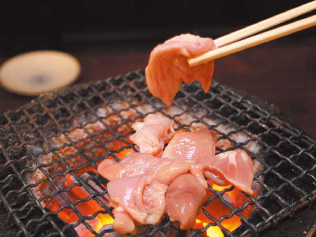 丁寧に仕込んだ塩ホルモンは肉厚でコリコリとした食感。味はあっさりしているが、噛めば噛むほど旨みが口の中に広がる。店は路地裏にあり、夏はテラス席で味わえる。