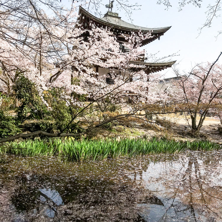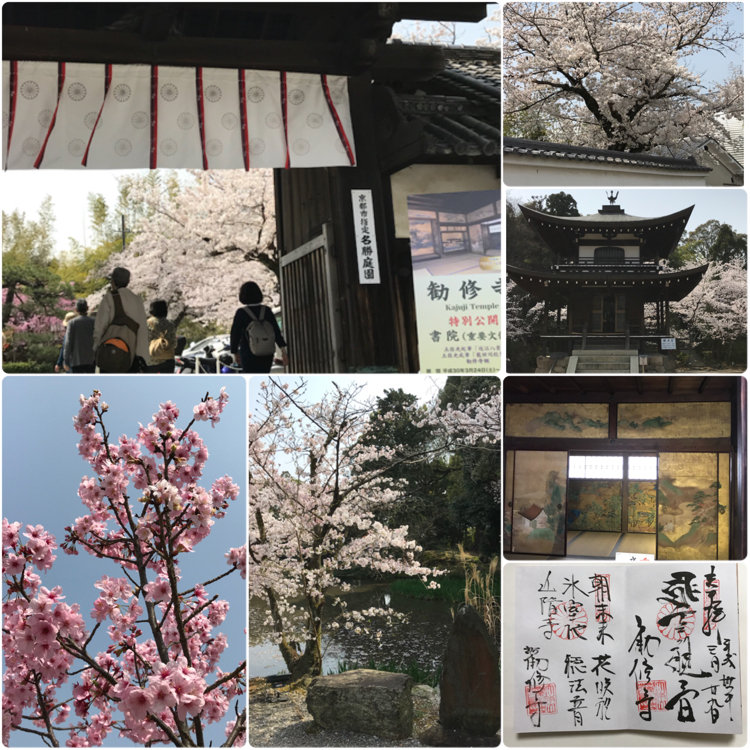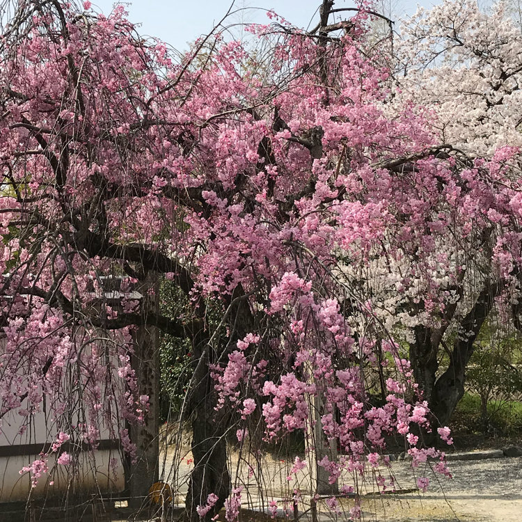 【桜🌸を追いかける京都旅〜その6*勧修寺】 醍醐寺で昼食も済ませたので、このあとは超のんびりモードへ。 バス通り(旧奈良街道)を挟んで反対側の細道を通って、更に今どきの団地街を抜ける(徒歩10分)と地下鉄東西線の醍醐駅に着きます。(駅まで案内もあります) ここから、太秦天神川行に乗ってひと駅、小野駅から徒歩6分ほどの勧修寺へお詣りしました。 こちらは昌泰3年(西暦900年)に醍醐天皇が創建され、門跡寺院として栄えました。 庭園は「勧修寺氷池園」と呼ばれ、「氷室の池」を中心に造園されて、周囲の山を借景にして自然美を楽しむ池泉庭園となっています。 池は蓮の枯れたあともあり、水鳥が数羽見られましたが、驚くほどまったり。ここで座ってぼぉ〜と佇んだり、家族連れで餌やりしているのも見かけました。池も撮影しましたが割愛してます。 (トップ、4枚め)書院と桜(ソメイヨシノ) おおよそ3分咲きで、陽のあたる場所は5分位だったでしょうか。 こじんまりとしていますが、(2枚め)拝観入口までの道は堂々としています。 (5枚め)入口の門前に咲いていた華やかな濃いピンク色の早咲き桜が散り始めていました。 (3枚め)書院の前庭にある灯籠は水戸光圀公が寄進した個性的な型(勧修寺型灯籠)です。 この灯籠を覆うように生えている植樹ハイビャクシンは樹齢750年とか。四季の花が楽しめる穴場スポットです。 門入口には「希望に起き、愉快に働き、感謝に眠る」という言葉があり、心にきゅんと染みました。 #桜 #ことりっぷ京都 #勧修寺 #小野 #春色さがし