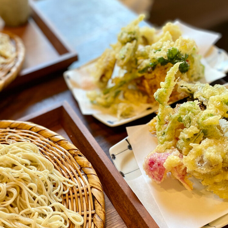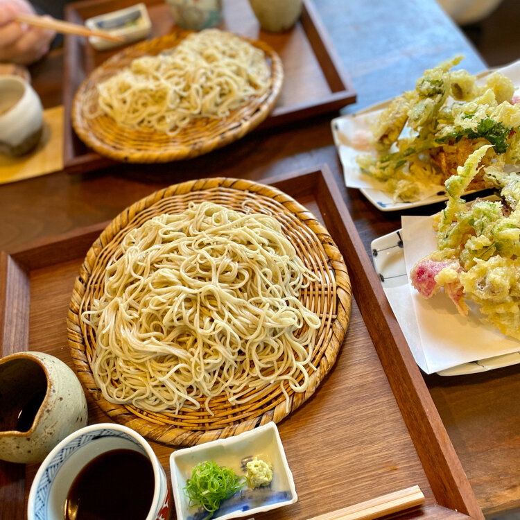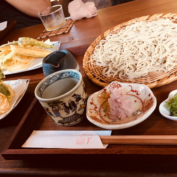 大自然に囲まれたお蕎麦屋さん⛰🌸 『手打ち蕎麦くげ』 * 岩茶房ことりさんで小腹が満たされたところで、 こちらは夫の大本命のお蕎麦さんに向かいました🚗 その時の時間は12時過ぎでしたが、売り切れ次第終了との事だったので💦慌てて行きました🚗 * お店に着いたら5組ほど待たれていて💦 順番待ちの紙に名前を書く時に前の人の名前の横に47と 書かれていて、線が引かれてたので一抹の不安をいだきながら待っていたら、次の人がラストでギリギリセーフで食べる事ができました😊💗(たぶん50食限定) * 外で1時間ほど待ってようやく入店できました😊 ・季節の天ざる蕎麦 蕎麦は十割蕎麦の細めんで、つるつる喉越しもよく✨💗 季節の天ぷらは定番のさつまいも、舞茸、玉ねぎのかき揚げの他に、菜の花やラディッシュ、セリなどの春を感じる野菜がサクサクに揚げられてボリュームもたっぷりでした😊ラディッシュが甘くて瑞々しくて美味しかったです💗 食べ終わる頃に絶妙なタイミングで蕎麦湯を持って来てくださり✨ こちらもポタージュのように濃厚で大変美味しかったです💗 食べるのに使った木の細いお箸🥢『よろしければお持ち帰り下さい』と書かれていたので✨家のお蕎麦用に使えるともらって帰りました😊 * くげさんは、蔵をリノベーションして作られたのでは? と想像できる店内で✨大テーブルのタイル使いが素敵でした😊 窓からは桜や山並みも見えて、外で待っている時も 中で待っている時も苦にならなかったです😊 暖かいお蕎麦も食べてみたいです🥢 #丹波篠山ランチ #丹波篠山蕎麦 #私のことりっぷ旅 #Myことりっぷ #レトロな街