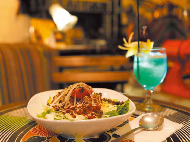 商店街の一角にある、音楽やアートに囲まれたカフェサロン。大人の雰囲気が漂う店内で、美しい彩りのカクテルやマスターお手製の料理を味わえる。毎日お店で碾く香り高いコーヒーもおすすめ。