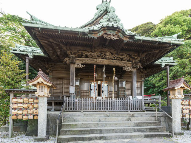 歴史は古く、養和元(1181)年に文覚上人が源氏の再興が叶えられ創建したとされる。現在の社殿は天保13(1842)年に再建されたもの。社殿に施された壮麗な彫刻の数々も見どころ。