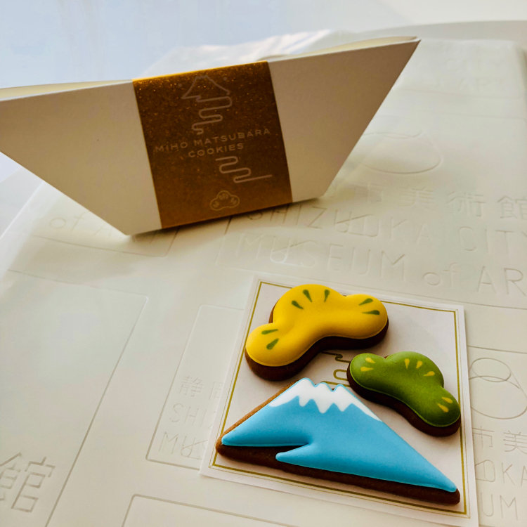 【静岡】2日目 6/28 梅雨の最中に静岡へ..... 私バカよね、おバカさんよね~😅 美術展を観終わったらミュージアムショップへ へ(^3^)/ 静岡の上空に線状降水帯☔️ 予定していたお店に行くのは無理、むり.... それならば、ここで #自分土産 を買いましょう‼️ 下⏬のスポットを押すとユーザーさんの過去投稿が見られます。そのなかで私の心を捉えたものがこれ🖕 ①〔MIHO MATSUBARA COOKIES〕 〈三保松原〉から眺める富士山をイメージしたアイシングクッキー ♡富士山... 約6cm ♡松....約4.5cm  約3.5cm この🖕大きさのものが3枚入っていて540円(税込) それが高いか適格かは個人の感覚。でもね、パッケージを開いたらフワーンとした上品な甘い香り。これは相当うまいよ😋 ②㊧柚子緑茶🍵ティーバッグ5個入り  ㊨静岡うまれのフルーツティー四種セット  ㊦ ①のアイシングクッキーのパッケージ 3点で2376円。まぁ、いつもの通りの自分土産の金額だね。 ③[静岡うまれのフルーツティー]の中味 🍊みかんとほうじ茶 🥝キウイと和紅茶 🍋レモンと緑茶 🍓いちごと和紅茶 すべてにティーバッグとドライフルーツが入っている。 ④ショップのとなりにカフェスペースがある。ドリンクが数種類のみなんだけど、すべて400円。🍊みかんジュースを頼む。 過去投稿には飲み物にアイシングクッキーが一つ付いていたようだけど.... アイシングクッキーのパッケージに 〈平野富山展 期間限定〉というシールが貼ってあったのね。それで製造元を🔍してみたら、何かすごく有名店になっている。 『婦人画報』のお取り寄せサイトにあった。相当の有名店じゃないと扱ってもらえないよ😅 数年で有名になって製造が追いつかないんじゃないの🤫 と推測 でも郷土の有名作家の大回顧展だから、美術館側が自注したのかな🤫 と推測 お初の美術館なので常時置いてある商品かわからにゃいのよね😺 bougiee 静岡市清水区三保1710-2 #静岡 #静岡市美術館 #ミュージアムショップ #みかんジュース #アイシングクッキー #フルーツティー #最近は緑茶だけじゃなく和紅茶も有名 #三保松原 #富士山