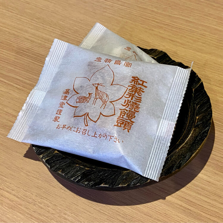 現在は3代目が営むもみじ饅頭の老舗。もっちり感のある生地とやさしい甘さの粒餡は相性抜群。他店とは異なる、リアルなもみじの型にも元祖の風格を感じられる。