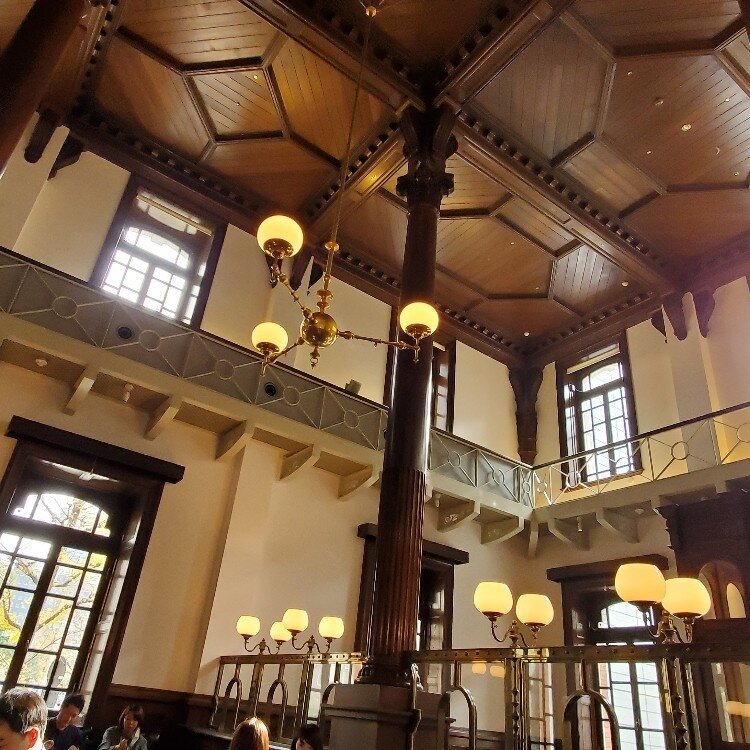 Cafe1894の”てのひらの宇宙”と”三菱の至宝展” ん?どっちがメインかな😅 先日、三菱の至宝展を観に三菱一号美術館へ 久しぶりのお出かけでした。 テレビ番組で予習をして見どころのポイントもチェック ゆっくり楽しんできました。 一番の見どころは国宝の太刀や屏風、唐物茄子茶入、そして世界三つしかないという曜変天目茶碗、他にも東方見聞録や沢山! 個人的には龍虎図屏風もみたかったのですが、 こちらは前期だけの展示となっていて見ることができず残念。 至宝展を楽しんだ後は Cafe 1894で三菱至宝展タイアップスイーツ 曜変天目をイメージした“てのひらの宇宙”をいただきました。 濃厚なチョコレートのテリーヌと抹茶アイスがマッチしていい感じ♡飴細工の曜変天目とアーモンドとキャラメルの焼き菓子もいいアクセント、爽やかな柚羊羹も添えられて口直しにもなります。 夫はさっぱりとした”アイスと季節のフルーツの盛り合わせ”こちらもとても綺麗です。 Cafe 1894は、1894年建設の丸の内初のオフィスビル三菱一号館を忠実に復元し、当時は銀行として使われていたそのクラシックな趣と吹き抜けの開放感のある空間を現在はお洒落なカフェバーにしたそうです。 クラシックな窓越しの風景も素敵でとても心地よくゆったりと過ごせます。 #三菱一号館館#三菱の至宝展#曜変天目##国宝展#美術館#コラボスイーツ#てのひらの宇宙#cafe1894#たまにはお出かけ##美味しいスイーツ#ゴーラー隊## #安心してもっと出かけたい#感染予防#早く収まれコロナ##