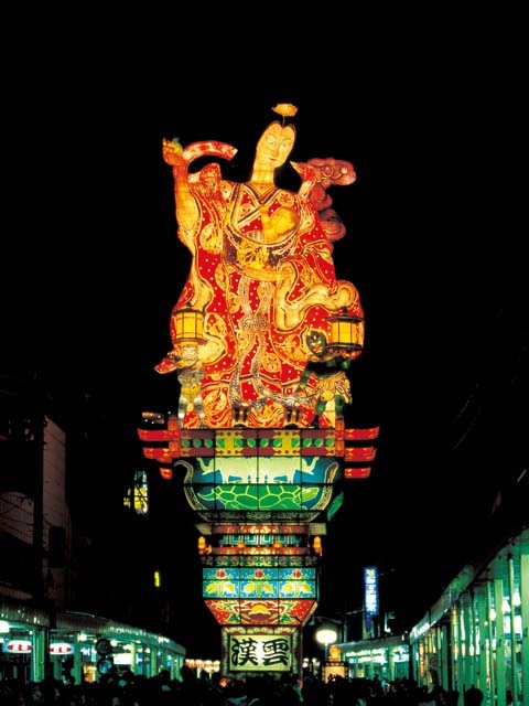 見どころは何と言っても“立佞武多”。1台の大きさは約22mにもなり、7階建てのビルに相当するというから驚きだ。天を衝くような巨大な姿で巡行する様子は圧巻。