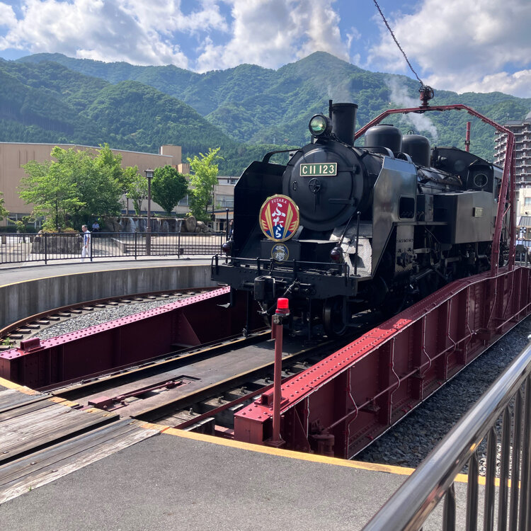 日光・鬼怒川温泉日帰り旅⑥ スペーシアX・SL大樹に乗車旅🚂 SL大樹 鬼怒川温泉駅 下今市駅からSL大樹に乗車して、 田んぼの中を走り、鬼怒川橋梁を渡って約30分程で、鬼怒川温泉駅に着きました。 鬼怒川温泉駅に着いて、汽車から降りて先頭に向かうと、運転席には3人の機関士さんが乗車していました。 石炭を燃やしているからでしょうか。車体付近はとても熱く感じました。 一人の機関士さんは汽車が駅に停車した後も、 真っ赤に燃える火室へと石炭をくべる作業を繰り返していました。 すっかり汗だくになっておられました。 やがて先頭が客車から引き離され、転車台へと向かい方向転換をします。その様子は改札口を出るとすぐの転車台の周りでじっくりと見ることができます。 東武鉄道がSL復活プロジェクトと名付け、「日光・鬼怒川エリアの活性化」や「東北復興の支援の一助」の実現を沿線地域度ともに取り組んでいく姿。かっこいいです。 初めてのSL旅、満喫することができました。 転車台について(HPより抜粋) 「東武鉄道では、SL復活運転プロジェクトにあわせてJR西日本が国鉄時代に使用していた2つの転車台を譲り受け、山口県の長門市駅で使われていた転車台は下今市駅に、広島県の三次駅で使われていた転車台は、鬼怒川温泉駅前広場に設置しました。」 #東武鉄道 #スペーシアX #SL大樹 #日光 #東武日光 #鬼怒川温泉駅 #電車旅 #転車台 #鬼怒川温泉駅を越えれば #春に訪ねた #会津へとつながる