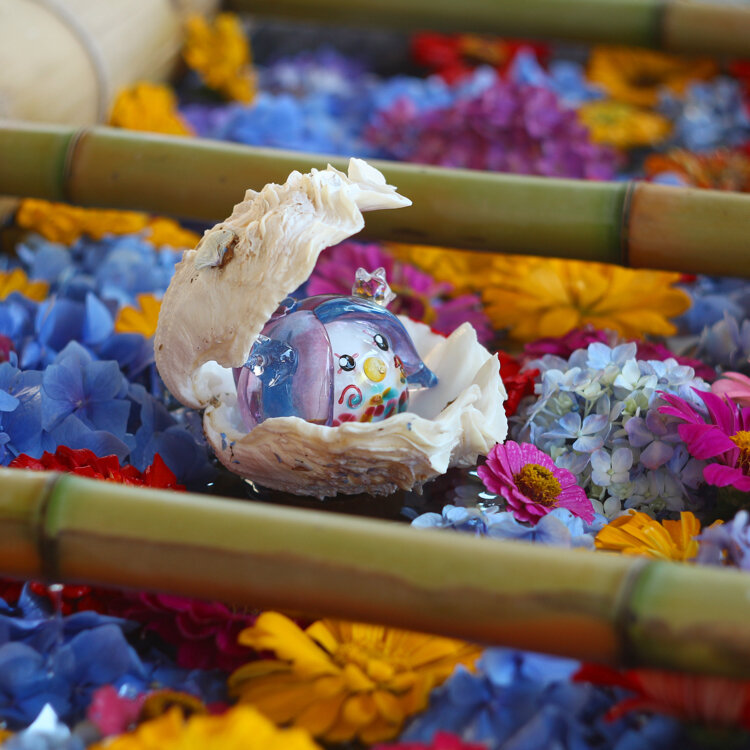 新潟県最大祭【七夕風鈴祭★天の川巡り】毎年6月30日~7月7日ライトアップ18:30~21:30。 クリスタルガラスの五泉八幡風鈴を始め日本全国47都道府県・世界の風鈴(約2,800個) 夕刻時には、織物の姫神を祀る末社の参道にイルミネーションで見立てた天の川が現れ、参拝者を幻想的な杜にいざなってます。 此の神社の風鈴とは、 五泉八幡宮と秋葉硝子とで 「新潟風鈴」が作られていて、それを元に「五泉八幡風鈴(神具)」が作られている。 クリスタルガラスの手吹きで、糸は五泉市の地場産業である絹織物の正絹(伊勢の神宮の御神宝にも取り扱われている)留具は国宝石清水八幡宮の竹(エジソンが白熱球を発明した折に使われた)等々…様々な神技で奉製されています。 今年は、令和元年特別風鈴を篠原江戸風鈴本舗とのコラボ風鈴が奉納される。 五泉八幡宮が御創祀1140年を迎え、記念に高円宮・出雲大社様共に自らお育てになられた「日本石亀(準絶滅危惧種)8匹」を下賜され、その返礼品に、五泉八幡風鈴を献上されました。下賜された「日本石亀」は新潟県では五泉八幡宮務所玄関でしか御覧出来ない貴重な亀で、金運,出世,縁結びの御利益がある。 期間中は、特別御朱印も配布されてます。 #新潟旅行#新潟観光#新潟県#新潟#五泉市#五泉八幡宮#五泉八幡風鈴#風鈴#新潟風鈴#七夕祭り#風鈴祭り#出雲大社#御朱印#縁結び#五泉城跡#城跡#神社