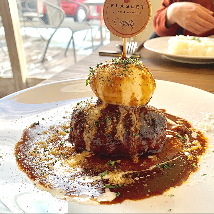 〚 𝙵𝙻𝙰𝙶𝙻𝙴𝚃 〛 𖠿:新潟市 中央区 神道寺南 / 鳥屋野潟 . 先日、鳥屋野潟にあるFLAGLETさんにお邪魔しました。 お店の外観も内装も可愛らしく、落ち着ける雰囲気です。 . 鳥屋野潟は道が狭いですが、ビックスワン(スタジアム)や桜並木を見る事ができてとても眺めがいいです。 目の前の川には鳥たちが遊びに来ている事も。 おしゃれカフェが密集している場所なので、他のお店も順にご紹介していきたいと思っています。 . 以前こちらで美味しいガトーショコラを頂いたのですが、今回はランチで噂の数量限定ハンバーグを注文。 個人的には前菜の美味しさから既に感動。 ハンバーグは見た目のインパクトも凄いですが、(ちなみに上にあるのは半熟卵)切った時の肉汁の多さに驚きました! そして柔らかさと美味しい味にまた驚き! 一緒に行ったハンバーグ好きの先輩も絶賛していました! 思っていたよりもボリューミーでかなりお腹いっぱいになりました。笑 . 火曜定休で、基本11時〜21時まで、金土は22時までやっているそうです。 また今度夜の雰囲気も楽しみに行きたいと思います。 . . #新潟 #新潟県 #新潟市 #鳥屋野潟 #新潟カフェ #新潟ランチ #新潟旅 #FLAGLET #ハンバーグ #半熟卵 #インスタ映え #フォトジェニック #鳥屋野潟カフェ #おしゃれカフェ #下越 #わたしの街