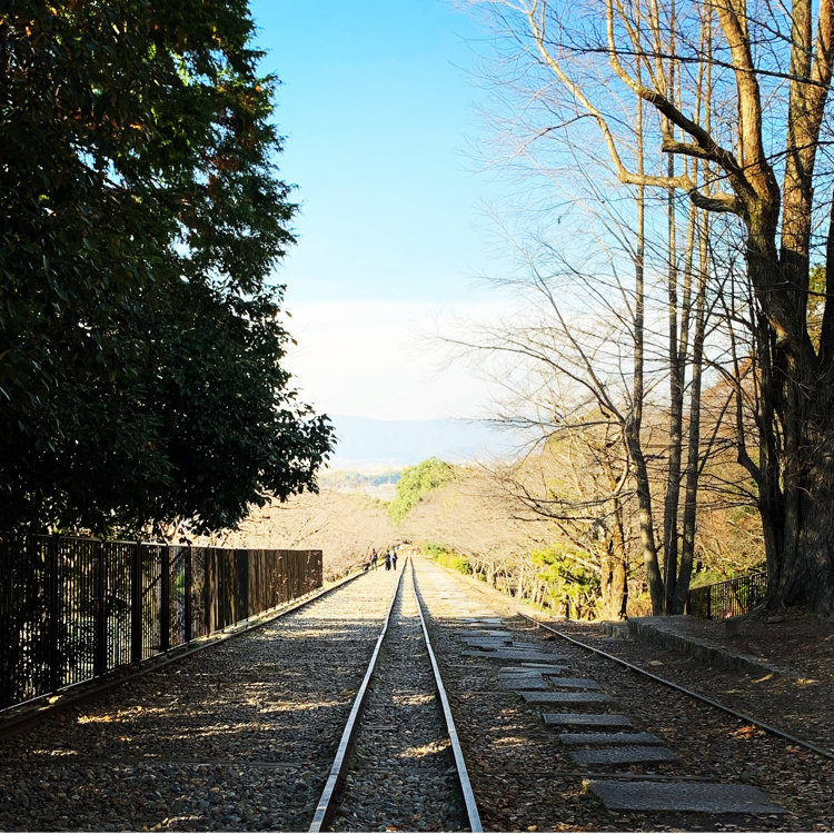 そうだ京都、行こう。 琵琶湖疏水とは 琵琶湖の湖水を京都市へ流す為に明治時代に作られた水路。その水は工業用水、水道水、発電用等に使われ、水路は水運のために使われたそうです。 水運、つまり舟で物資を運びますが、ここ蹴上地区は傾斜がキツいため、ケーブルカーの原理でレールを走る代車に、舟ごと乗せて運んだそうです。 それがこの場所、蹴上インクラインです。 美味しいランチを食べて、バスを待つ間ゆるゆると散策していると目に付いた柘榴❇️、ふと下を見ると何やら人が何組も! では我々も🤭 という次第で、降りた場所です🎶 びっくりするほど広いレール幅が分かりますか? 真ん中の2本ではありませんよ☝おそらく上り線と下り線の、計4本のレールです。 最後の写真に舟の乗った代車があります。 時代の流れで、水運は昭和23年に廃止されたそうです。 現在は春の桜の名所となっているそうですが、数年前に復活の試運転がされたようですね🌸 ちなみに、疏水の水力発電による電力は平安神宮の神苑にある初の電気鉄道の運行にも使われていたそうです🚋 神苑でも流れる水は琵琶湖疏水の水と書かれていました😊 #行き当たりばっ旅#三姉妹ことりっぷ#ことりっぷ京都 #琵琶湖疏水#インクライン#蹴上インクライン #柘榴#冬を味わう