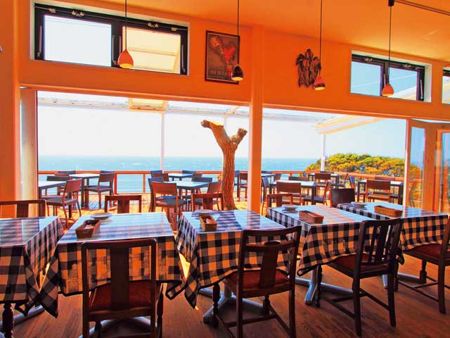 国内外に40店以上を展開する「イルキャンティ」の店。カフェスタイルながら本格的なイタリア料理が充実している。展望灯台の近くにあり、全席オーシャンビュー。特にテラス席がおすすめ。