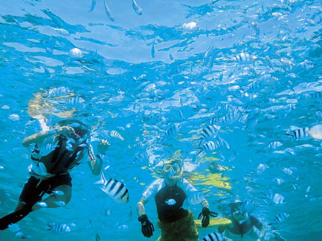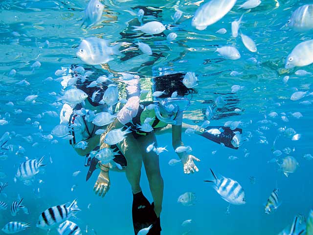 世界的に有名な白保の海と青サンゴの群礁をグラスボートとシュノーケリングで楽しめる(所要2時間30分~3時間)。ツアーに参加するには前日までの予約が必要。
