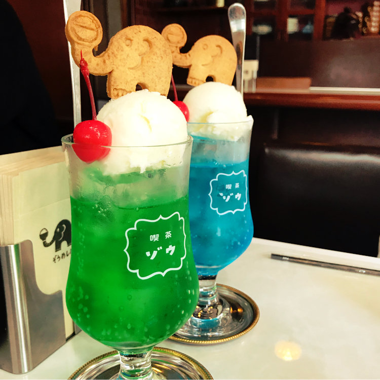ちょこっと京都<藤袴祭> ⑫ 「喫茶ゾウ」 *フロート レモン ・クッキーあり *カスタードプリン 「京都御苑」を烏丸通り側に出て、ぞうめし屋 の3店舗目「喫茶ゾウ」さんを目指しました。 ことりっぷの記事や素敵ユーザーさんの紹介でずっと気になっていました。 大好きな昭和レトロな雰囲気で、外のショーケースに並んだメニューにワクワクでした。 テーブル3つとカウンターのこじんまりとしたお店は、ほぼ満席でしたが、お一人様だったのでカウンターの隅っこに座れました。 名物のカラフルなクリームソーダをオーダーするつもりでしたが、好きなテイストのレモンを見つけ、トッピングの可愛いいゾウさんのクッキーありにしました。(メニューにクッキーありとなしが設定されていて、単品で100円でも頂けます。販売もしています。) 好みのタイプのかためのプリンも一緒に頂きました。 フルーツ好きとしては、プリンアラモードが気になったのですが、カスタードプリンそのものを味わいたかったのでシンプルにオーダーしました。期待通りの程よいかたさのプリンにカラメルがたっぷりかかって美味しかったです。 フロートのアイスは、自家製ミルクジェラートでさっぱりとしていました。 愛らしいゾウをモチーフにしたグッズも販売されていました。 次は、素敵ユーザーさんが召し上がっていたクレープやたまごサンドを頂きたいです。 #ちょこっと京都#藤袴祭#スタンプラリー#喫茶ゾウ#フロートレモン#カスタードプリン#クラシカルな街#私のことりっぷ旅